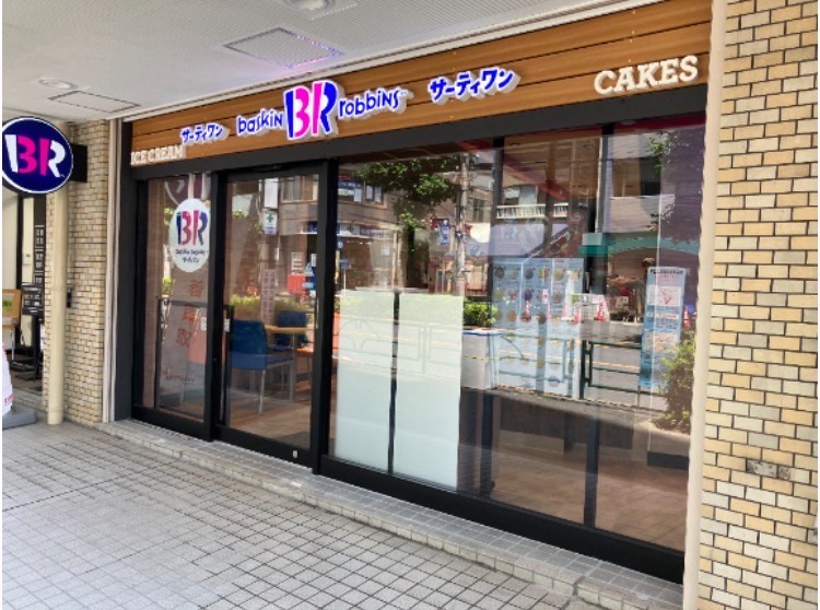 サーティワン白山駅前店 カラフルで種類豊富なフレーバーのアイスで有名なアイスクリームチェーン店です。…